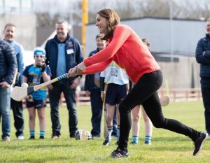 Kate, who is a huge hockey fan, showed her prowess on the field when she had a go at hurling and whacked the ball into the heavens.