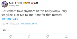 sick of this storyline.#Emmerdale— Jehan (@1stLadyHooligan) October 9, 2019