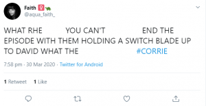 #Corrie Bringing knife crime into it Pathetic storyline😬