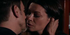 And apparently, Carla wanted some help with a smooch – and was indeed prepared to let the man who cheated on her on their wedding day before immediately embarking on an affair with Tina McIntyre assist with that.