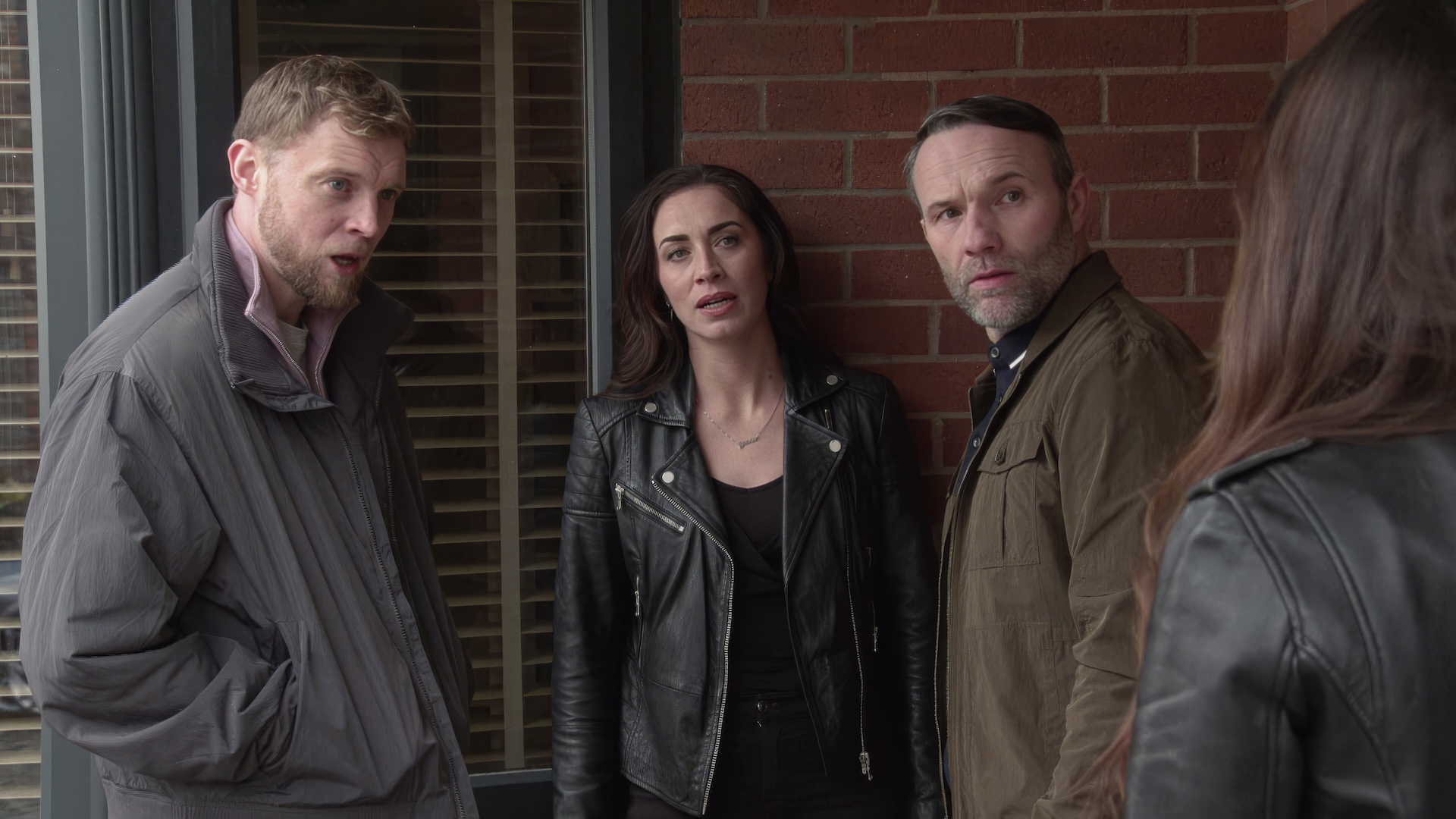 Jodie is preparing to leave Weatherfield, but then she hears Shona screaming. Outside, Shona is being confronted by two men.