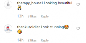 A second wrote: “You look stunning,” with a heart eyes and kissing emoji.