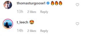 Actor Thomas Turgoose posted three fire emojis, and Lucy’s boyfriend Tom Leech put a heart eye emoji
