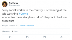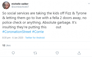 DO YOUR RESEARCH @ITV 🙄#corrie— Kat Eliza 🦉 (@KatEli999) January 6, 2020