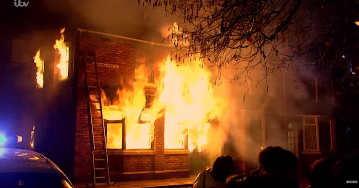 The fire broke out after hours when then-landlady Bet Lynch (Julie Goodyear) was upstairs in bed. Jack Duckworth (Bill Tarmey) joked she’d probably been smoking in bed, but in fact, he’d accidentally caused the fire when he’d tried to repair a faulty fuse.