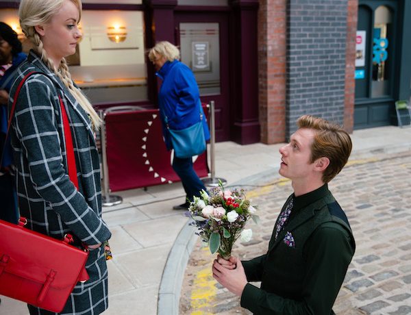 When Sinead arrived back in Weatherfield, she steps off the tram and is greeted but Daniel down on one knee.