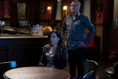 Paranoid Zoe Slater fears that someone’s out to get her in EastEnders spoilers for next week – as the family’s past comes back to haunt them at Halloween. After derailing the pub quiz when another of Zoe’s bombshells drops, further chaos ensues when Alfie discovers an old VHS tape.