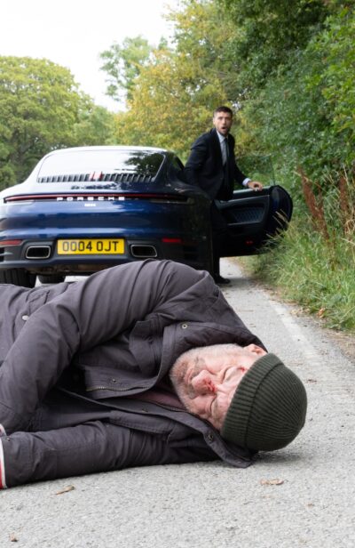After threatening the Kings on Monday night (October 20), warning that “justice comes in many forms,” Joe was already on edge when Tuesday’s (October 21) episode began. Driving fast and distracted by his phone, he suddenly ploughed into something in the road — and was horrified to discover it was Jimmy King.