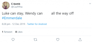 Can Luke stay? I actually like him. Wendy can go if she wants I don't care 👋 #Emmerdale