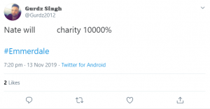 Watching @ITV @emmerdale and wondering if #Nate will be eyeing up #Charity next 😊😂