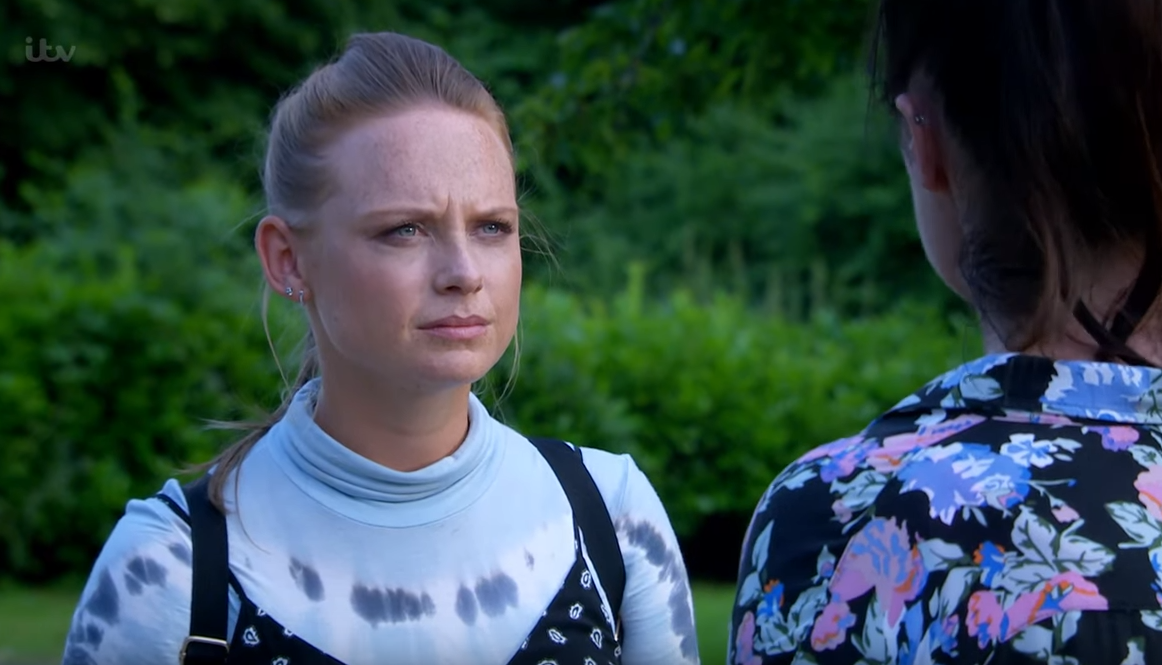 In a preview shared on Emmerdale’s official YouTube channel, Amy tells her mum that she’s been up all night and every time she sees Tracy and Vanessa she feels sick.