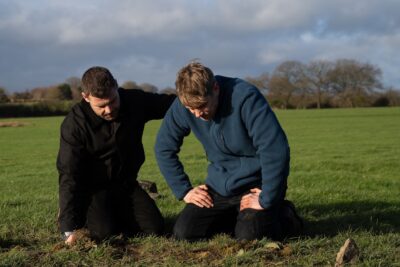 Aaron is worried when he sees Robert on his knees in Annie’s Field. He thinks he’s had a breakdown.