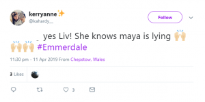 Go ed Liv!! As much as I want evil Maya to get caught, I love seeing her squirm!! 🙌 #emmerdale