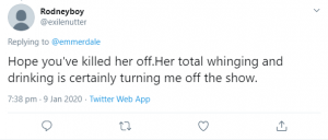 You guys need to kill her off her character has become that boring I a struggle to even watch the show now