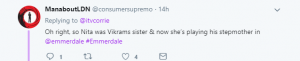 Viewers were shocked to realise that Rebecca Sarker, who played Nita and Chris Bisson, who played Vikram now star in Emmerdale together.
