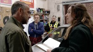 Questioning Kevin about Michelle’s car and explaining it was involved in a deadly smash, Kevin confirms the car was serviced by Abi.