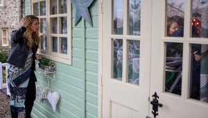 Maya arranges to meet Jacob in the summerhouse for his ‘present’. But Liv arrives and thinks the romantic set up is for her.