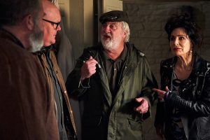 The next day Zak wants to talk about it whilst at the Woolpack. Faith suggests they talk in the cellar.