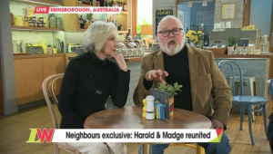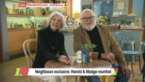 Fellow long-time Neighbours stars Alan Fletcher (Dr Karl Kennedy) and Jackie Woodburn (Susan Kennedy), as well as Bonnie Anderson (Beatrix Nilsson) also appeared on the programme in a live broadcast from the soap’s set.