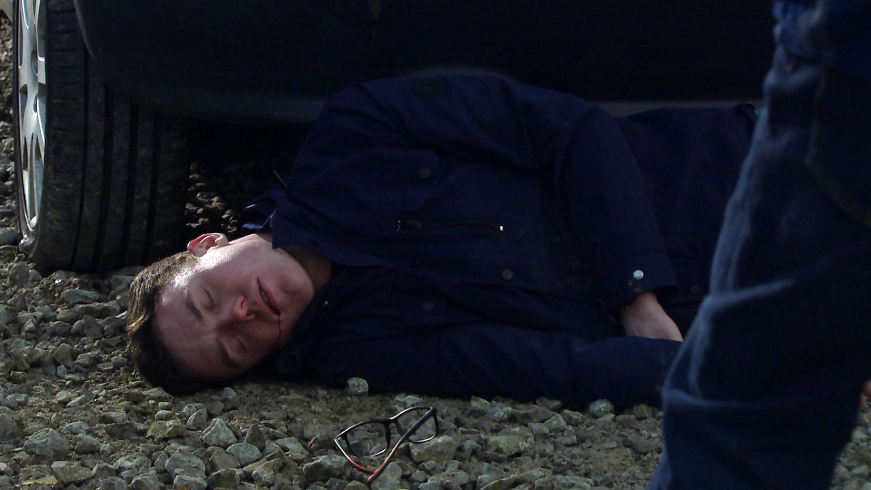 As blood trickles from Vinny’s mouth Paul stares at his lifeless son.