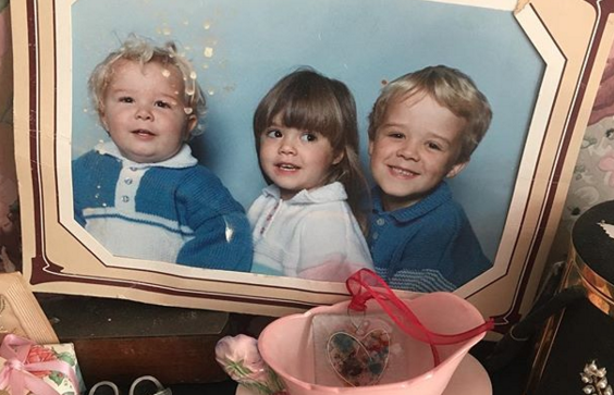 Referring to his older sister and brother, the 30-year-old actor – he’s the one on the left – captioned the photo with the simple words: “Me, Amy, Tom.”