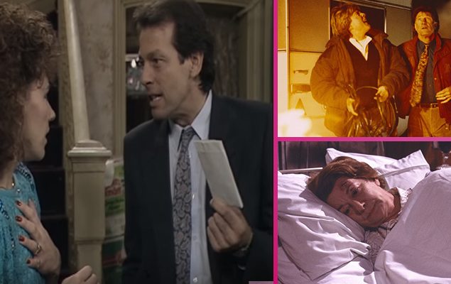 As is tradition on Albert Square, Christmas Day at the Old Vic was rather dramatic in 1986. Dirty Den Watts used the festivities as an opportunity to inform his wife, Angie, of his intentions to file for divorce. Around 30 million viewers tuned into BBC One on December 25, 1986 to watch Den serve a gobsmacked Ange with divorce papers. The landlady’s disbelieving face as Den hands her the papers, declaring with a sinister smirk: “Happy Christmas Ange.” This moment the most highly viewed episode of any British soap to date. It also remains the most shocking break up in soap history.