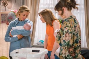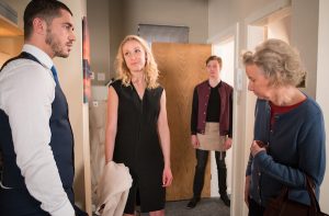 A devastated Eva arrives back in Weatherfield, pretending she’s just got back from America. She ‘meets’ baby Susie for the first time and can’t stop cuddling her. While alone with the baby and Toyah, she tells Toyah she can definitely see Aidan in the little girl. Is Eva having second thoughts about letting Toyah take her daughter now Aidan is dead?