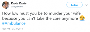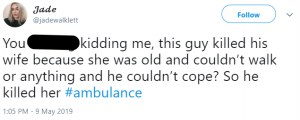 A fourth tweeted: “How low must you be to murder your wife because you can’t take the care anymore.”