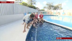 Last year, Mike was preparing to chat to five England swimmers on BBC Breakfast.