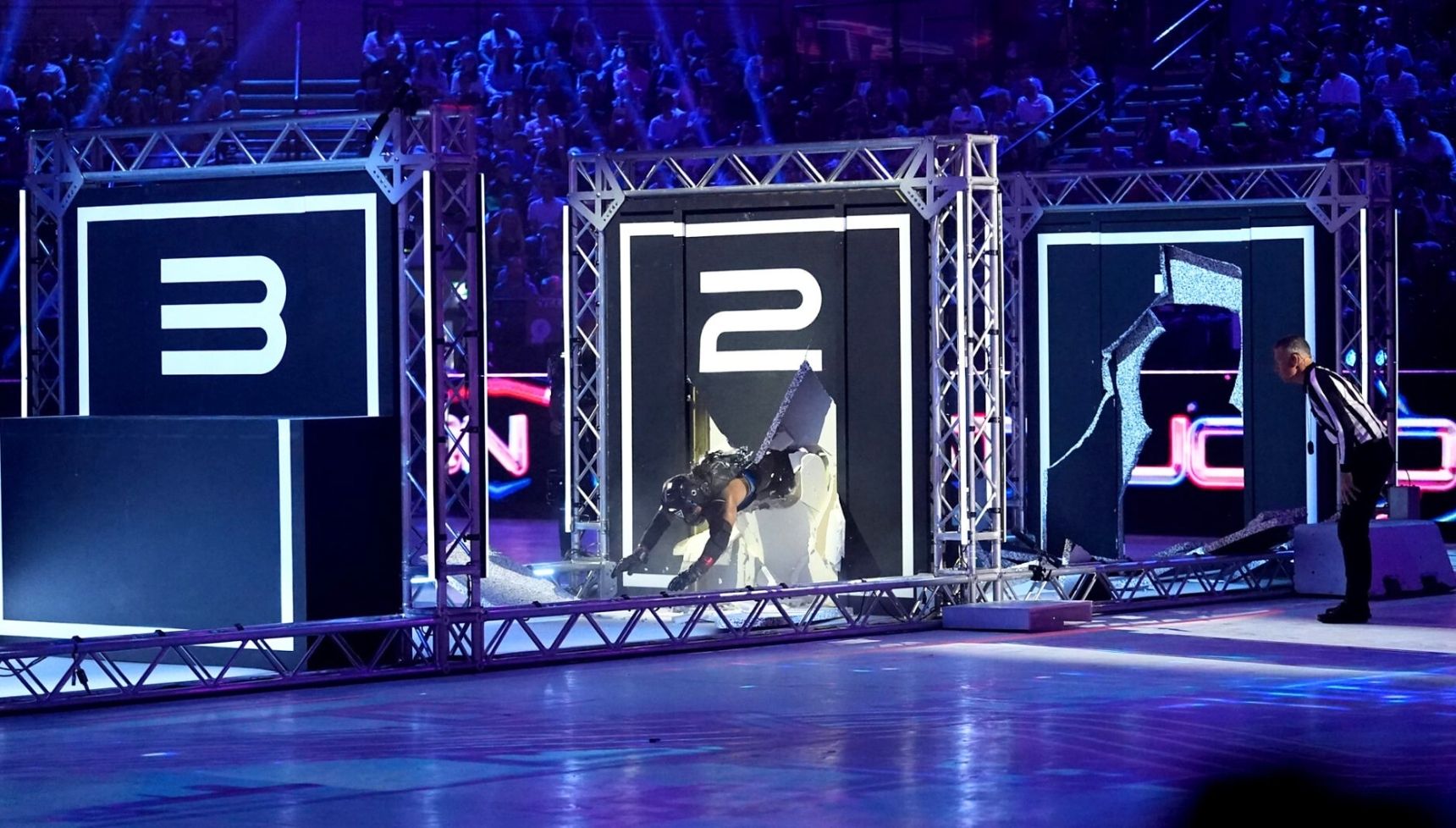 Each Contender must stick to their own lane while smashing through a series of towering 8ft barriers.