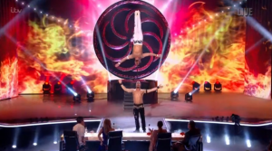 The pair, from Armenia, wowed the judges at the auditions with a similar stunt.