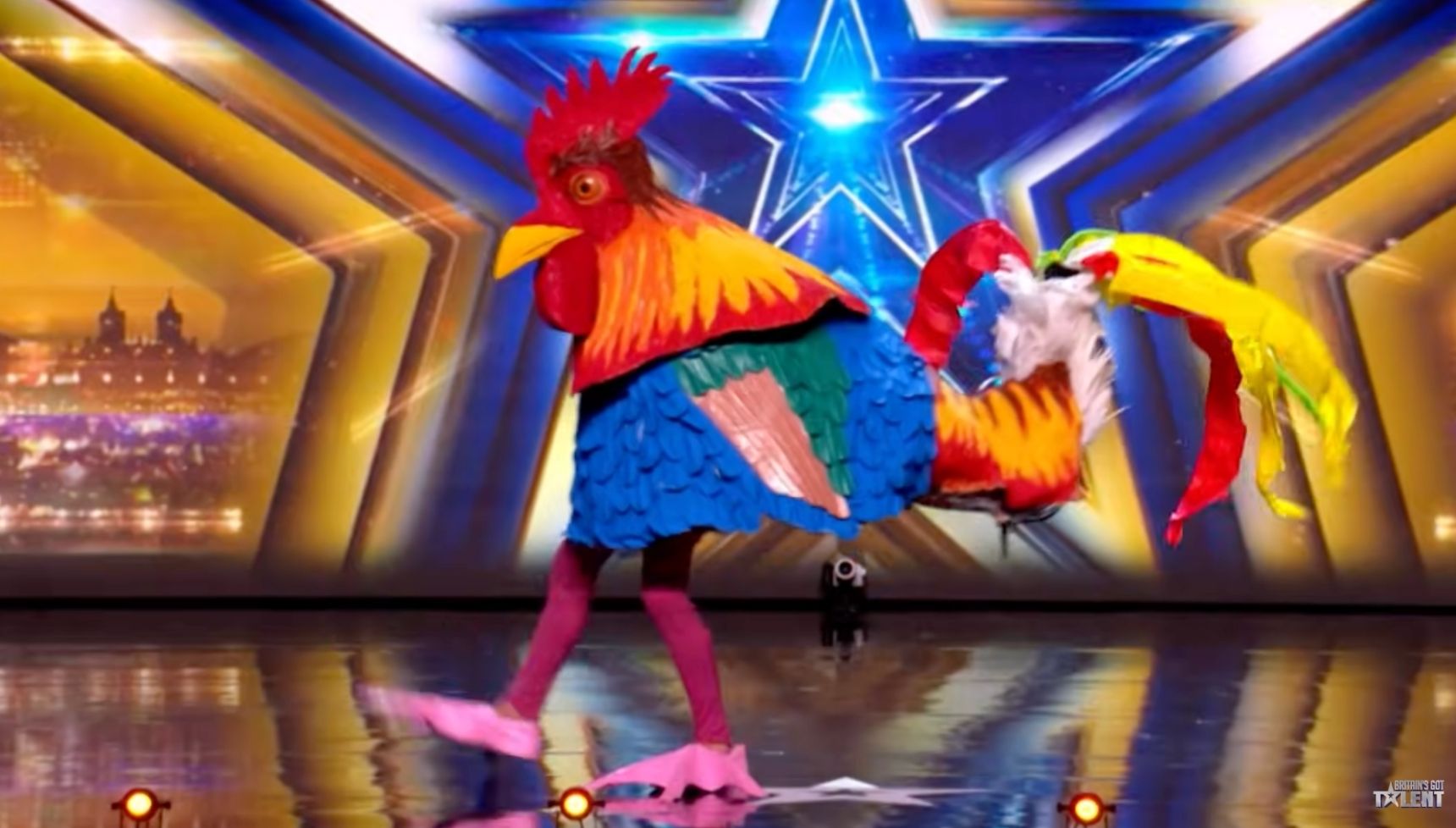One dance group appears dressed as The Joker from Batman. Another act seems to feature a giant cockerel costume.