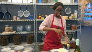Oti was attempting to match the meal that her partner Zandra Rhodes was making on the other side of the partition, and it’s safe to say that she struggled to work out what she was cooking.
