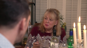 As three remained, they had to go round to Amy’s mum’s for Sunday dinner and – CRINGE – her mother started grilling them about their experiences with sex.