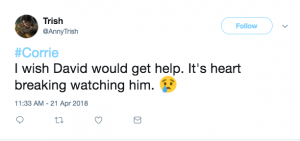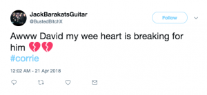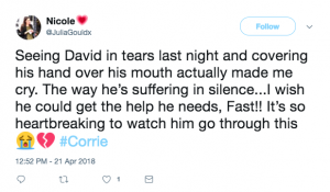“Awww David,” said one sad viewer. “My wee heart is breaking for him.”