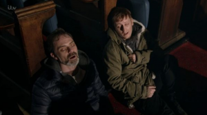 In the episode that got people riled up on social media, vicar Billy could be seen slumped against a pew in the church, with his drug-dealer brother passed out by his side.