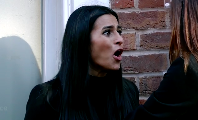 But when Carla Connor spots her trying to attend, she loses it.