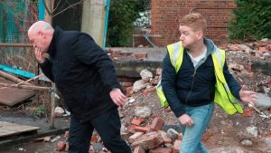 “Gary basically gets wind that Phelan is still in North Wales, so he tracks him down to a caravan park there and he thinks it’s a bright idea to bring it back to Weatherfield and lock him up in the builder’s yard.