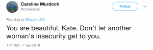 And as soon as her post hit social media, fans were tweeting Kate back in their droves, supporting her comment that the mystery troll should be ashamed of themselves.