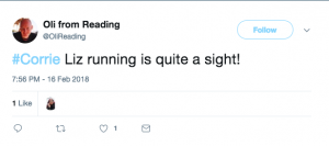 “Liz running is quite a sight!” said one amused viewer.