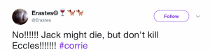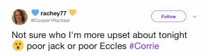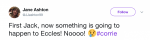 Corrie viewers were left fearing for Jack Webster last night after he was seen fighting for his life in hospital, but it seems Jack isn’t the only one viewers are worried about.