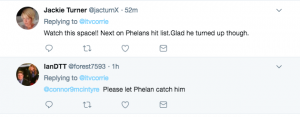 “I guess he’ll be the next on Phelan’s list,” predicted another. “Please let Phelan catch him,” begged another viewer.
