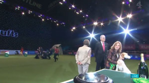 Animal rights activists evaded security and ran across the arena floor just moments after whippet Collooney Tartan Tease had been crowned Best in Show.