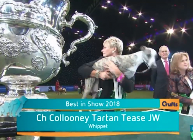 Whippet Mama gets top marks on Mothers day for protecting her bubba at Best in Show during pitch invasion! #Crufts
