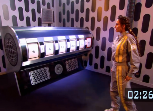 Having eventually put the set of wheels in the correct combination, she couldn’t find the crystal hidden in one of several plastic balls before the time ran out.