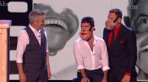 A source told Ent Daily: “Simon is absolutely fine. He’s been laughing about it during the ad break. There’s been lots of laughter in the dressing room, with a few production members jokingly acting with their tails between their legs! But Simon saw the funny side.