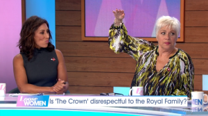 Panellist Denise was told to be careful what she said during a discussion about Netflix drama The Crown – but she laughed off the advice as she entertained the studio audience with her friend’s tall tale.
