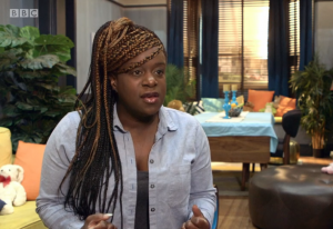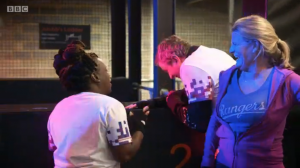 Joining up with Les Dennis, Susannah Constantine and Miles Jupp for BBC Two’s Famously Unfit for Sports Relief, Tameka was challenged to hang by her hands from a bar for as long as she could.
