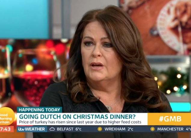 Comic actress Kate Robbins said it was only fair to split the bill as families faced their most expensive festive lunch in a decade.