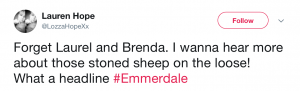 Other fans were desperate to hear more about the dazed sheep that was apparently roaming the village…
